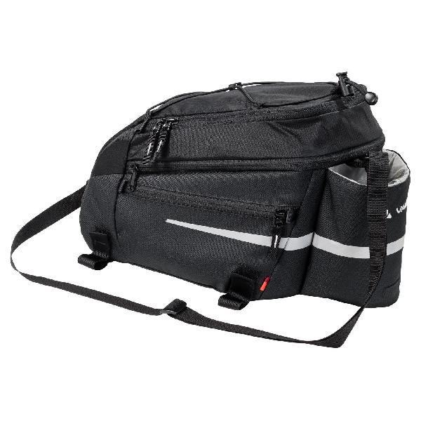 Compleet! Deze bagagedragertas van Vaude van 9 liter plus 2 liter extra volume heeft een flessenhouder, bagagenet, schouderband, regenhoes en praktische vakken binnen en buiten. Geschikt voor het MIK-systeem.