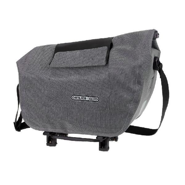 Een moderne grijze waterdichte kantoorfietstas van kwaliteitsmerk Ortlieb. Met een klepsluiting, een handige organiser, een gevoerd laptopvak en Quick Lock 3.1-bevestiging.