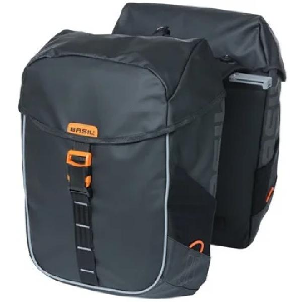 Basil Dubbele fietstas MIK Basil Miles Tarpaulin - 34 Liter - Zwart / Oranje