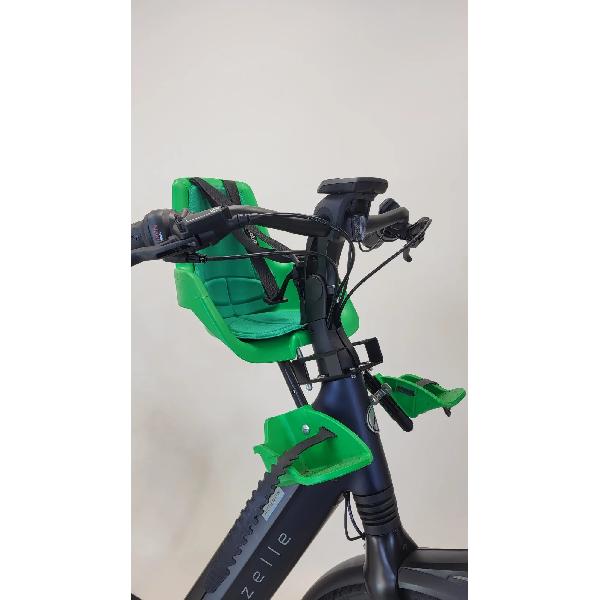 Met deze beugel kan een Bobike kinderzitje probleemloos op een fiets met A-Head balhoofdstel gemonteerd worden, ook als de buis van de herenfiets hoog zit of in de weg bij het stoeltje.