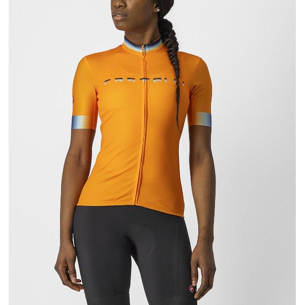Castelli Fietsshirt Korte Mouwen Dames Oranje Blauw - GRADIENT JERSEY POP ORANGE-L