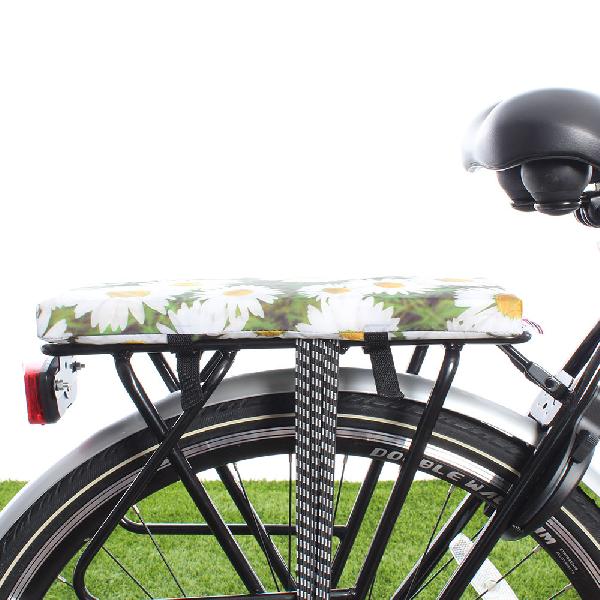 Met de Big Cushie van Hooodie zit u voortaan comfortabel achterop de fiets. Dit waterafstotende fietskussentje is maar liefst 8 cm dik en heeft een fleurige blokkenprint.