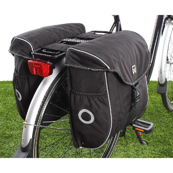 Een dubbele fietstas van Willex met een inhoud van 22 liter. Gemaakt van waterafstotend materiaal, met geïntegreerde regenhoes en reflectie.