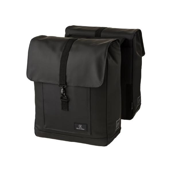 Een stijlvolle waterafstotende polyester fietstas van Fastrider met een inhoud van 28 liter. De dubbele fietstas is voorzien van een voorgemonteerde MIK-adapterplaat.