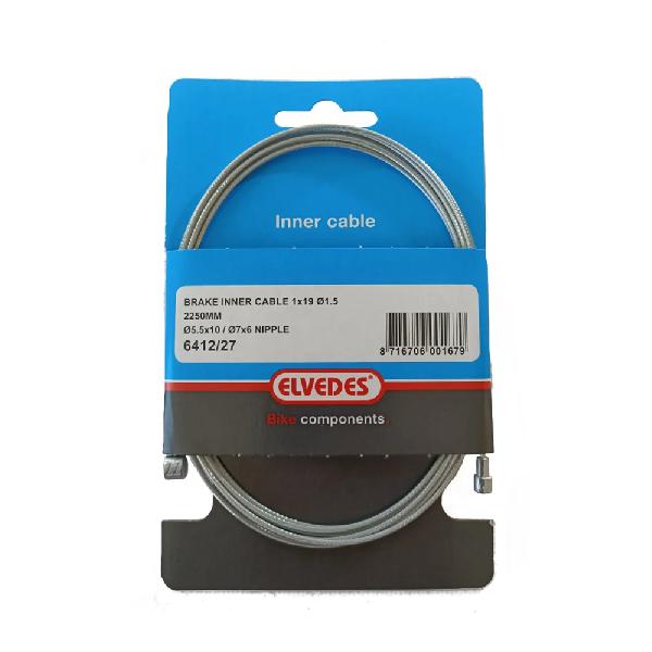 Elvedes achterrem binnenkabel Specificaties: Kleur: zilver Materiaal: staal Positie: achter Lengte: 3000 mm Dikte: 1,5 mm Soort nippel: tonnippel Producttype: 6427RVS-3M Inhoud: 50 Binnenkabels