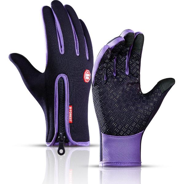 Fietshandschoenen - Paars - Fleece Handschoenen met Ritssluiting - Racefiets - Mountainbike - Winter - Maat XL