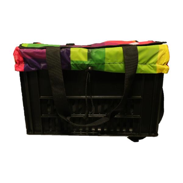 Een boodschap mee in je fietskrat?, Dan is de fietskrattas van Hooodie de ideale oplossing. Eenvoudig in een melkkrat te plaatsen en met een klittenband deksel.