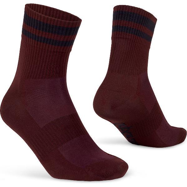 GripGrab - Original Stripes Crew Zomer Fietssokken Gestreepte Retro Wielersport Sokken Coolmax - Unisex - Donker Rood - Maat L (44-47)