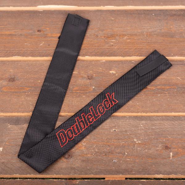 Een zwarte cover voor een lang Loop Chain-kettingslot van het merk DoubleLock. De stevige beschermhoes voorkomt beschadigingen en beschermt de ketting.