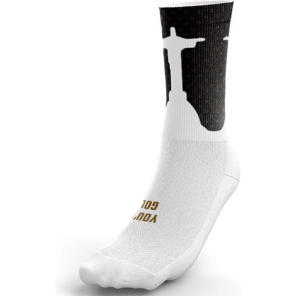 Ode aan onze olympische kampioen. Geeft nooit op en heeft het liefst een wedstrijd die naar de 300 km gaat. Met deze sok val je gegarandeerd op. De felle kleuren, gekoppeld met de contouren van 'el Cristo', brengen je in hogere sferen op en naast de fiets.