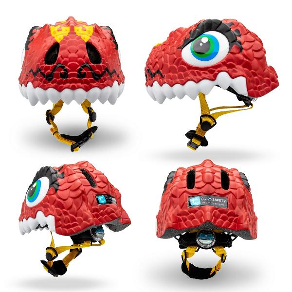 Zeer opvallende roze helm voor kinderen van 3-8 jaar. Een Crazy Safety fietshelm in de vorm van een Roze Draak.