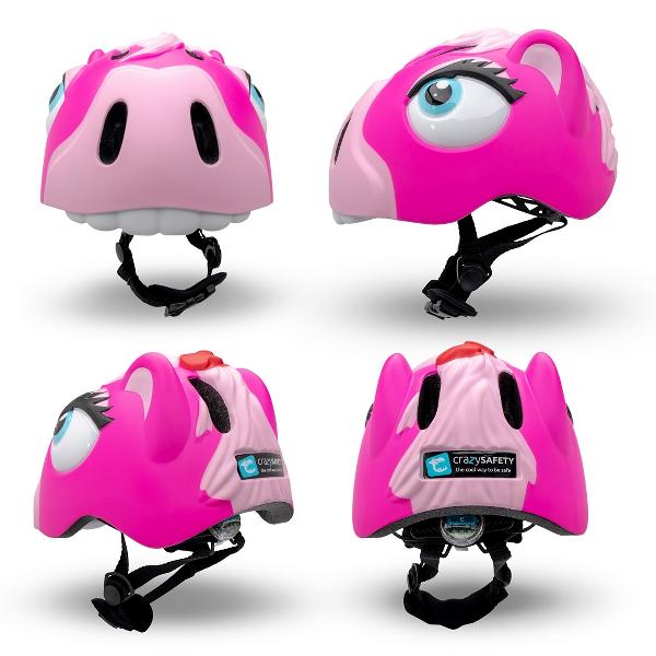 Zeer opvallende roze helm voor kinderen van 3-8 jaar. Een Crazy Safety fietshelm in de vorm van een Roze Draak.