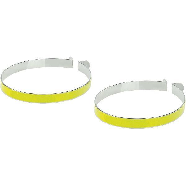 Reflecterende klemmen om je broek tussen de spaken uit te houden. Bieden tevens veiligheid door de reflecterende werking.