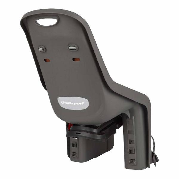 Mooi zwart Polisport achterstoeltje, gemaakt voor een fiets met een bagagedrager van 17,5 cm breedte. Hoge kwaliteit en super veilig.