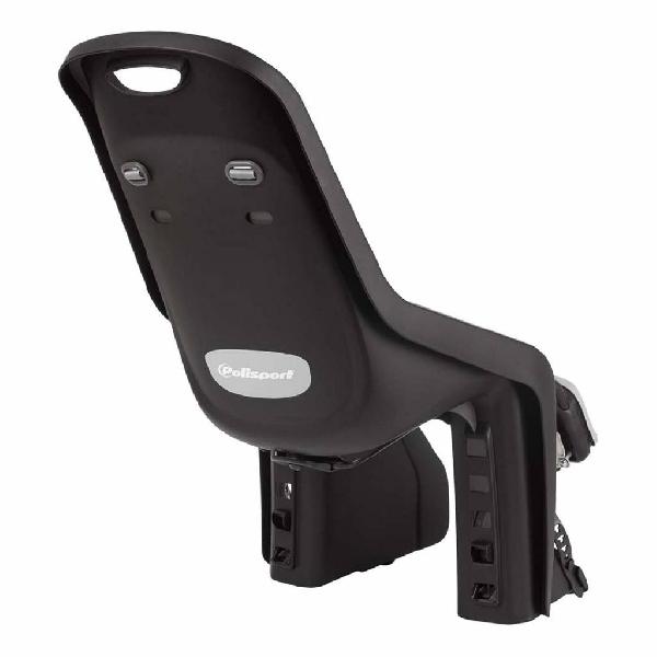 Mooi grijs/bruine Polisport achterstoeltje, gemaakt voor een fiets met een bagagedrager van 17,5 cm breedte. Hoge kwaliteit en super veilig.