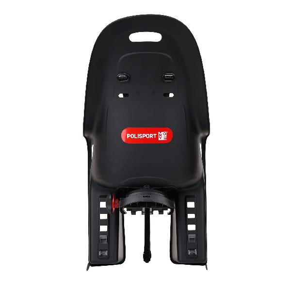 Achterstoeltje van Polisport met een luxe afwerking, ideaal voor bagagedragers tot 18,5 cm breedte, in een mooie neutrale zwarte kleur.