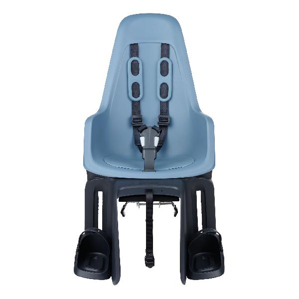 Bobike Maxi One Citadel Blue fietsstoeltje voor achterop de fiets. Het achterstoeltje heeft comfortabele schouderpads om de 3 punt gordel. Veilig en Mooi
