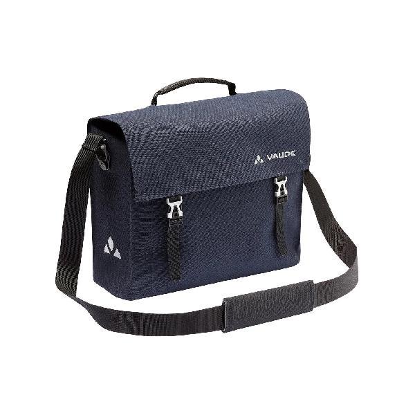 Deze stevige donkerblauwe aktetas voor op de fiets, de Bayreuth IV van Vaude, is van topkwaliteit. Waterdicht gelast, met een gepolsterd laptopvak, schouderriem en een verstelbare Plug and Ride-bevestigingsrail.