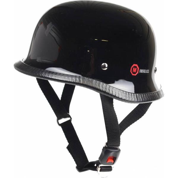 - Heeft de kenmerkende duitse helm vorm.- Waterbestendig.- Kleur: glans zwart- Materiaal buitenkant: glasfiber- Snelsluiting aan de kin riem.- Maat: LDeze helmen hebben geen EC keuring. Het gebruik ervan...