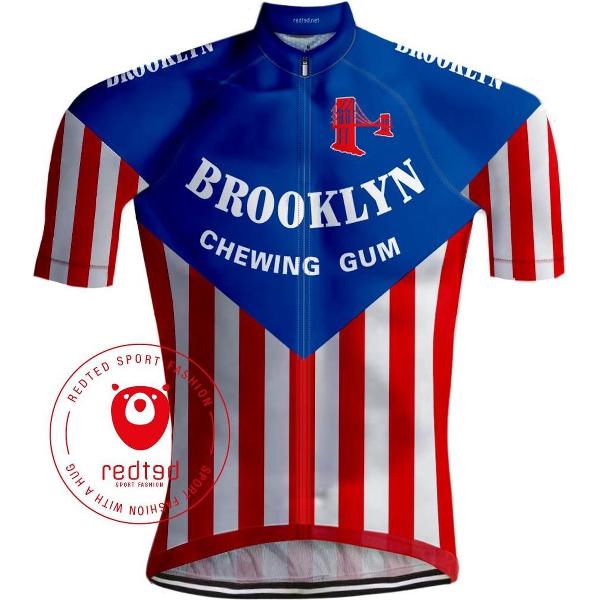 Retro Wielershirt Brooklyn Blauw/Rood - REDTED - 4XL