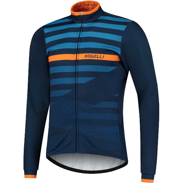 Rogelli Stripe Winterjack - Fietsjack Heren - Blauw/Oranje - Maat XL