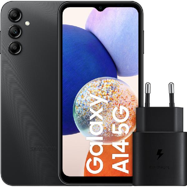 Samsung Galaxy A14 64GB Zwart 5G + Samsung Snellader Zwart