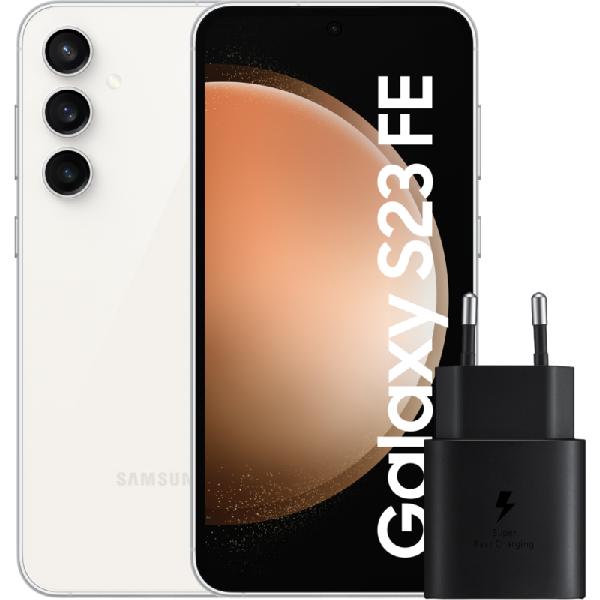 Samsung Galaxy S23 FE 128GB Crème 5G + Samsung Oplader 25 Watt Zwart