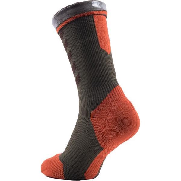 Sealskinz MTB Mid Mid with Hydrostop - Fietssokken - Heren - Maat XL (47-49) - Dark Olive/Mud/Orange