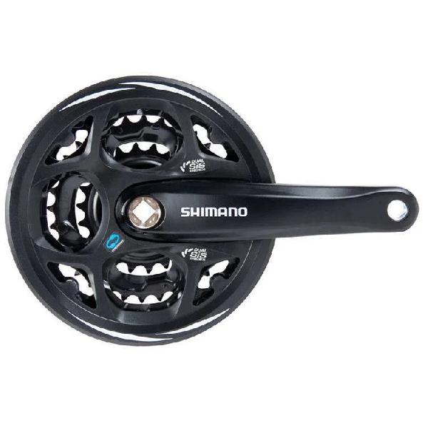 Het Shimano Crankstel 48/38/28 - FC-TY501 met Kettingscherm - Zwart is geschikt voor 6/7/8 speed.