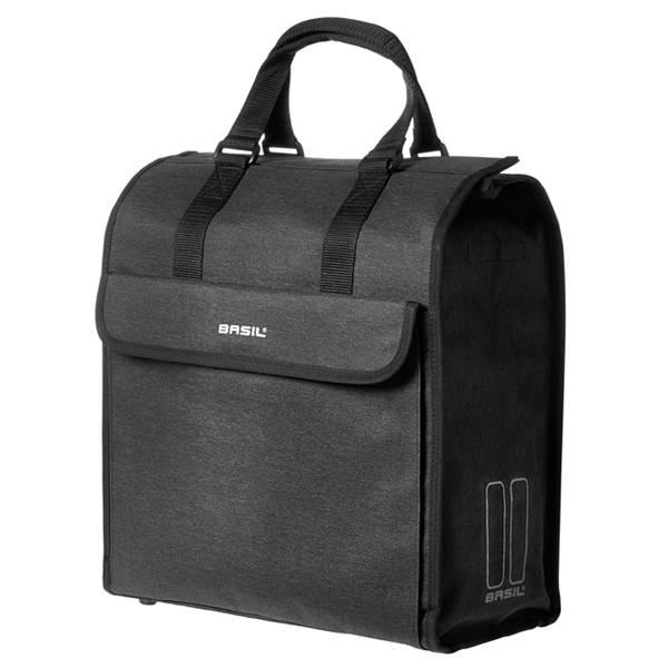 Zoekt u een ruime enkele fietstas? De XL Shopper van Basil heeft een inhoud van 20 liter, is gemaakt van waterafstotend polyester en is voorzien van een groot voorvak, zijvakken, een binnenvak en draagriemen/schouderbanden.