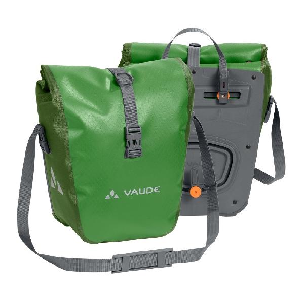 Papegaai groen en van sublieme kwaliteit. Deze waterdichte tassenset voor achterop, van Vaude, biedt gelaste naden, PVC-vrij canvas, 48 liter inhoud, rolsluiting, ruime binnenvakken, reflectie, een schouderband...