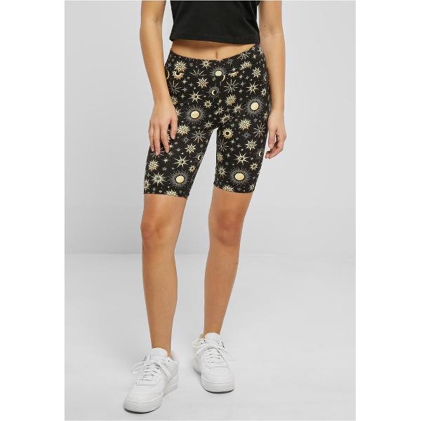 Urban Classics - Soft AOP blacksun Korte cycle broek - XS - Zwart/Goudkleurig
