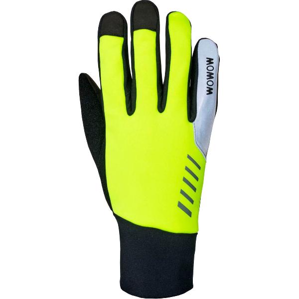 Lekkere warme winterhandschoen gemaakt van Softshell met een neopreen pols. Handschoen is gemaakt om touchscreens te bedienen. De duim is voorzien van een zachte stof. De binnenzijde is voorzien van gelpads om de ergste schokken op te vangen. Fluoriserend geel met reflectie.