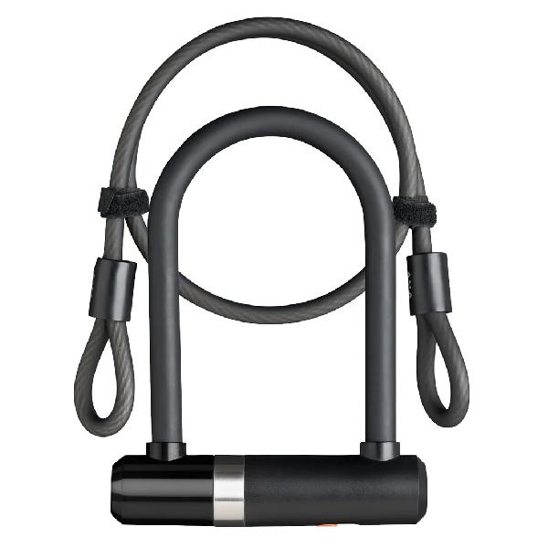 De AXA Newton mini is een gehard stalen U-vormig beugelslot met een modern ontwerp gecombineerd met een kabel, zeer geschikt voor gebruik bij fietsen of lichte gemotoriseerde tweewielers.