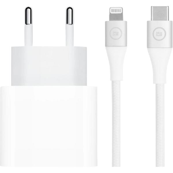 Apple Power Delivery Oplader 20W + BlueBuilt Lightning Kabel 3m Nylon Wit