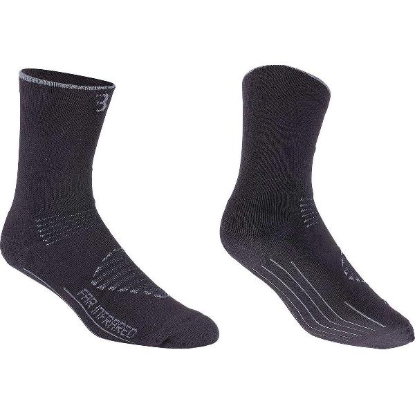 Specificaties voor BBB Cycling FIRFeet Fietssokken - Far InfraRed Fiets Sokken - Koude Weersomstandigheden - Zwart/Grijs - Maat 44/47 - BSO-16
