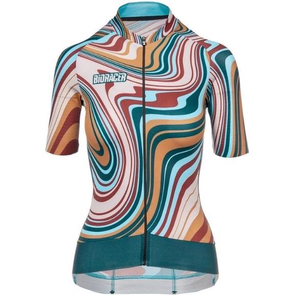 Dit Bioracer Epic Liquid Lola Dames Fietsshirt is een van de beste fietsshirts in de Bioracer damescollectie. Met dit shirt ga je voor stijl gecombineerd met prestatie en snelheid. Laat je innerlijke strijder op de fiets zien, draag de gemoderniseerde liquid print in stijl. Dit shirt wordt geleverd met bijpassende armwarmers voor de wat koelere lente, zomer en herfst dagen.