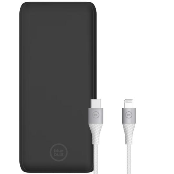BlueBuilt Powerbank met Snelladen 20.000 mAh + Lightning Kabel 1,5m Nylon Wit