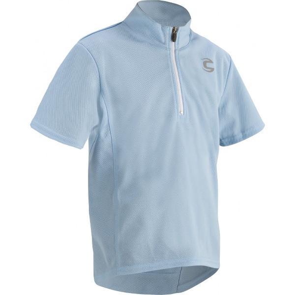 Fietsshirt voor kinderen van Cannondale in de kleur lichtblauw. Het shirt is voorzien van een korte rits en 3 achterzakken.