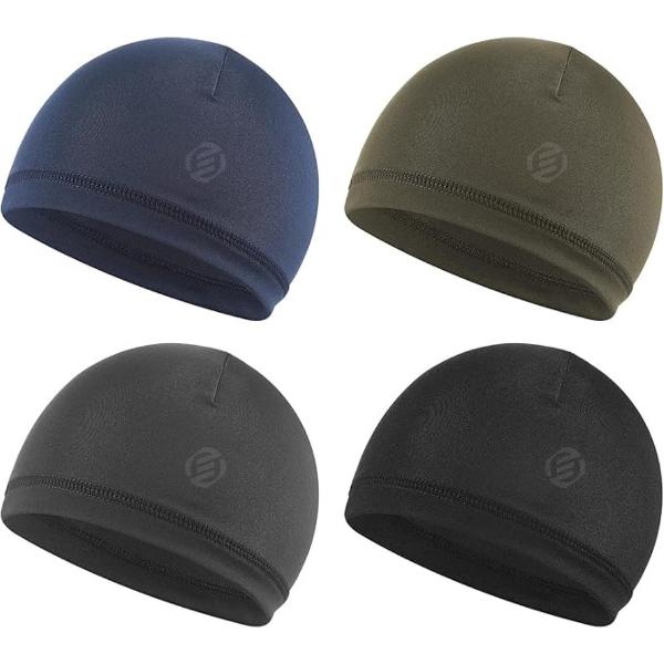 Equivera muts voor onder helm - Pakket van 4 sportmutsen voor heren met schedelmotief - vochtafvoerende strohoed voor op de fiets, elastische zomerhoed voor hardlopen, helmvoering voor op de fiets, heren en dames (4 kleuren) - zwart, marineblauw, leg