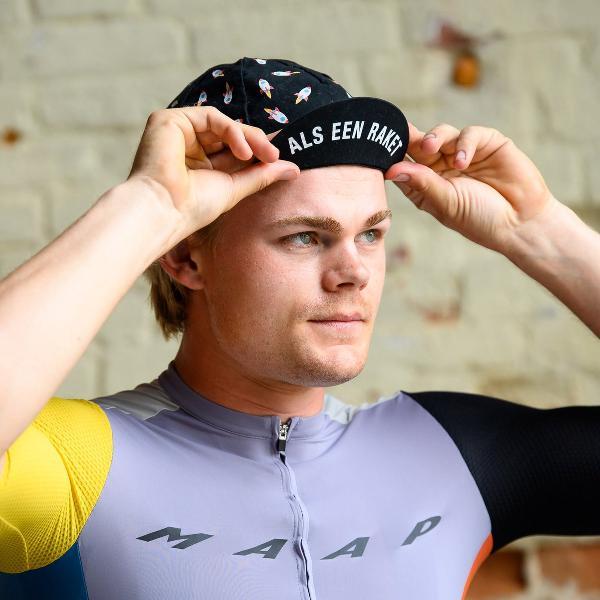 Ga jij voor snelheid en stijl op de fiets? Dan is de Snelle Sokken Fietspet met raketprint precies wat je nodig hebt! Met de stoere tekst Als een Raket op de klep laat je iedereen zien dat jij klaar bent voor elke uitdaging.