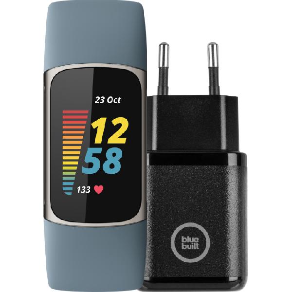 Fitbit Charge 5 Zilver/Blauw + Bluebuilt Oplader