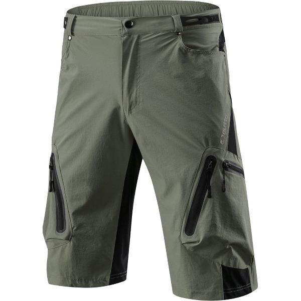 Mountainbike fietsbroek - hoge kruis - korte - met veel zakken - L - Legergroen