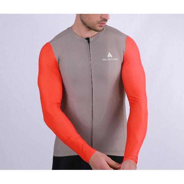 Queciao Fietsshirt Lange Mouwen – Winter Jersey – Heren/Dames/Kids – Oranje-Sahara – Ademend & Warm