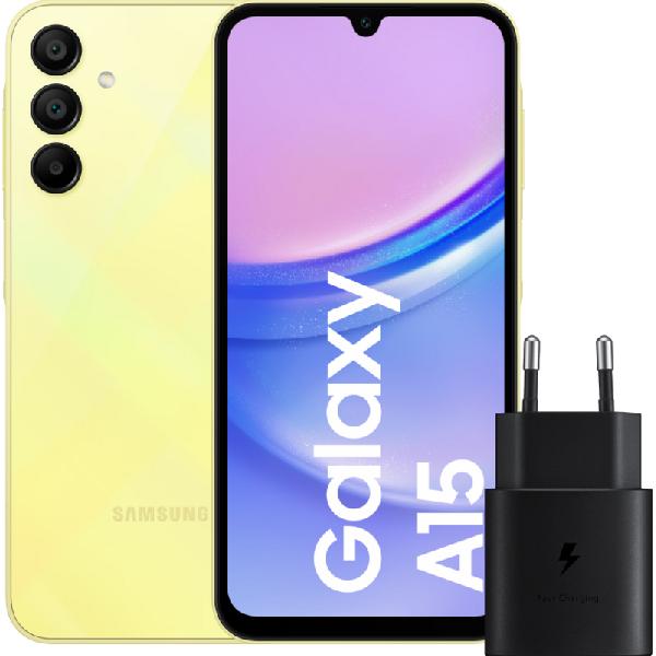 Samsung Galaxy A15 128GB Geel 5G + Samsung Oplader 25 Watt Zwart