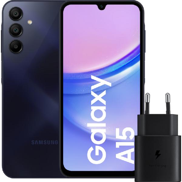 Samsung Galaxy A15 128GB Zwart 4G + Samsung Oplader 25 Watt Zwart