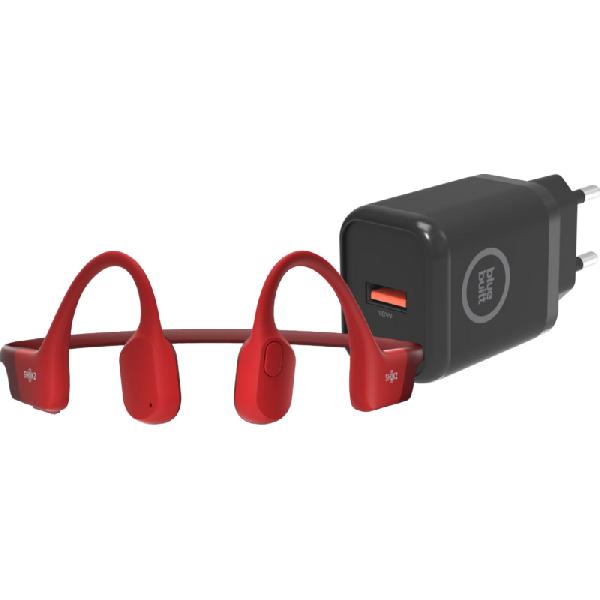 Shokz OpenRun Rood + BlueBuilt Oplader 18W